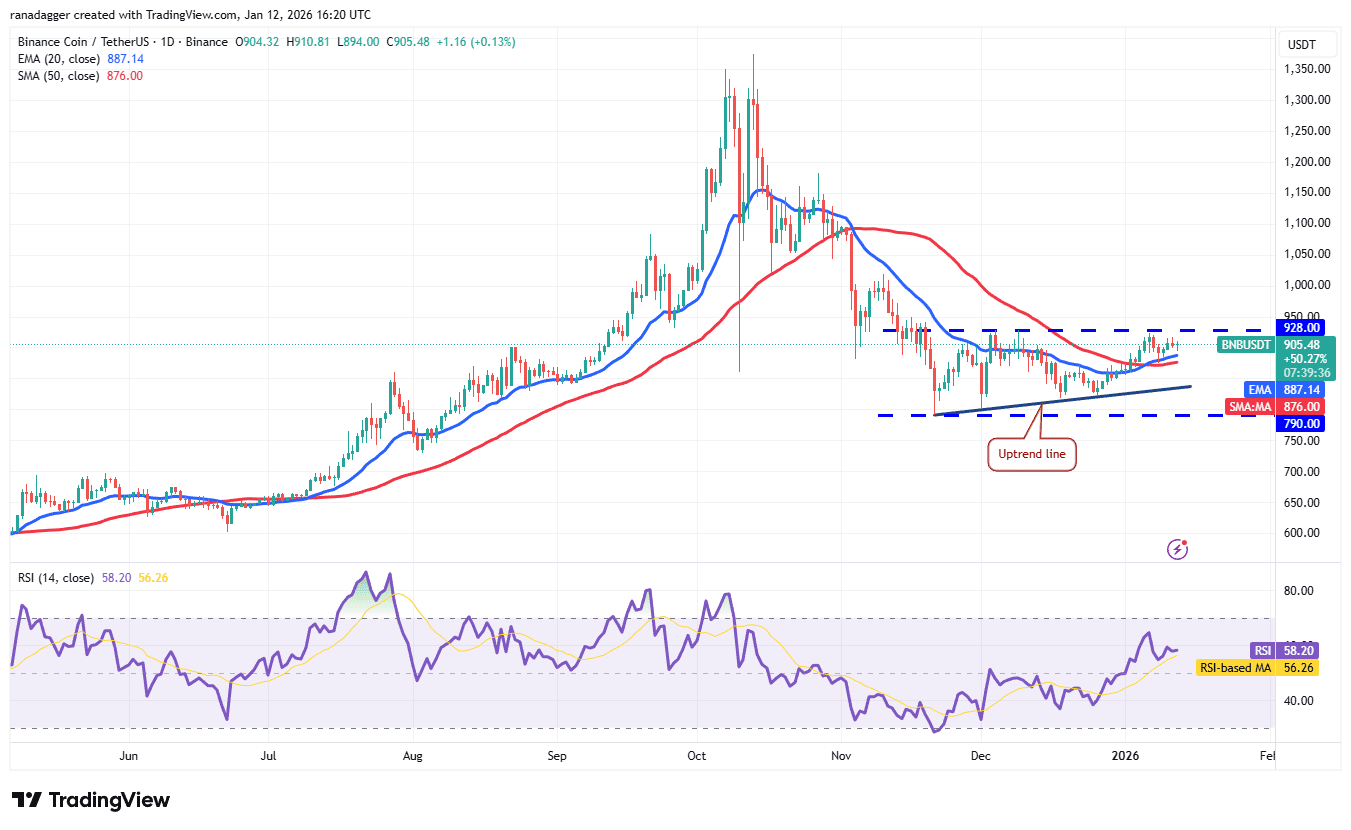 BNB (BNB) se obchoduje uvnitř úzkého pásma mezi klouzavými průměry a rezistencí 928 $.