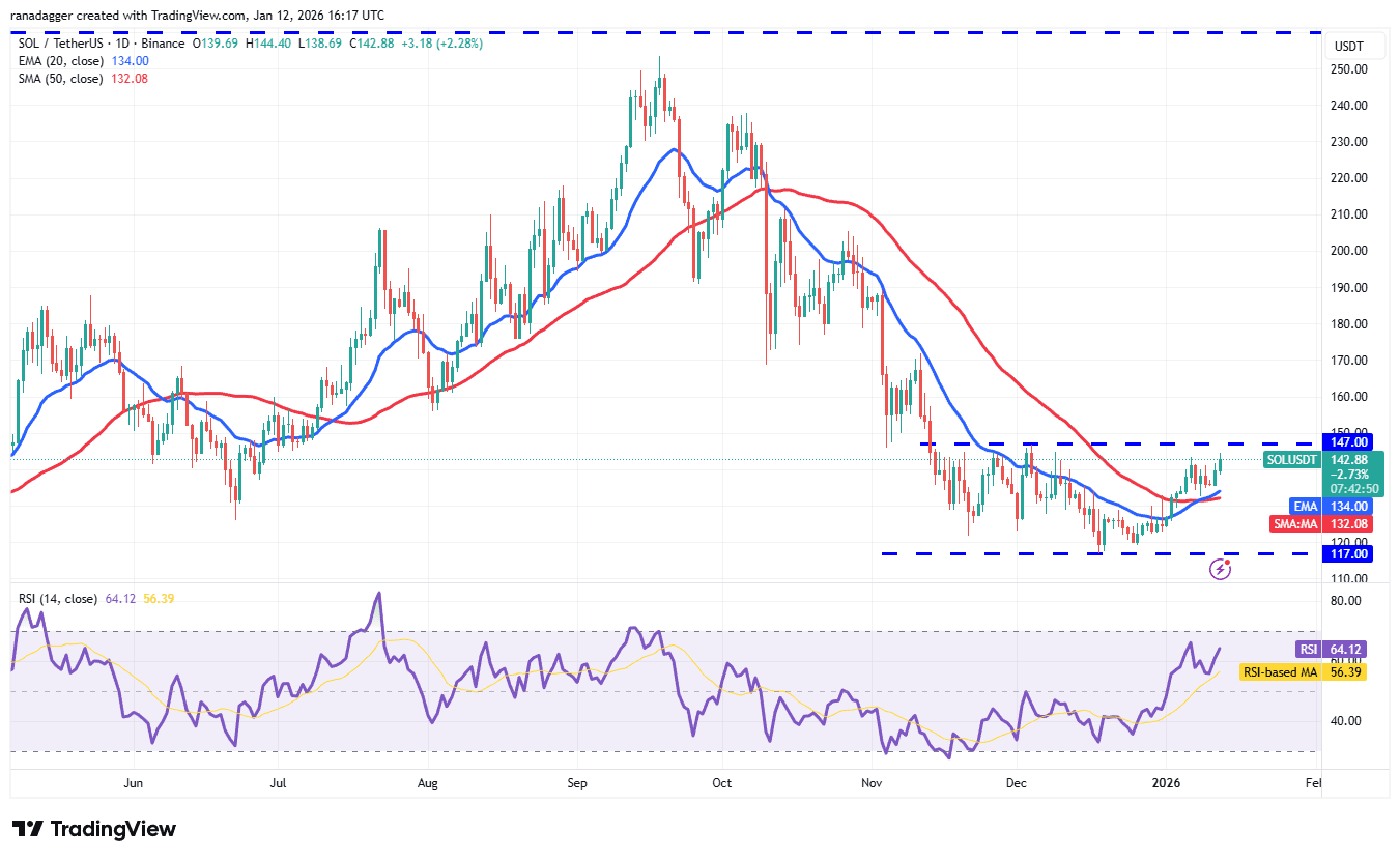 Solana (SOL) se odrazila od klouzavých průměrů a dosáhla úrovně 147 $, kde se očekává, že medvědi zasáhnou.