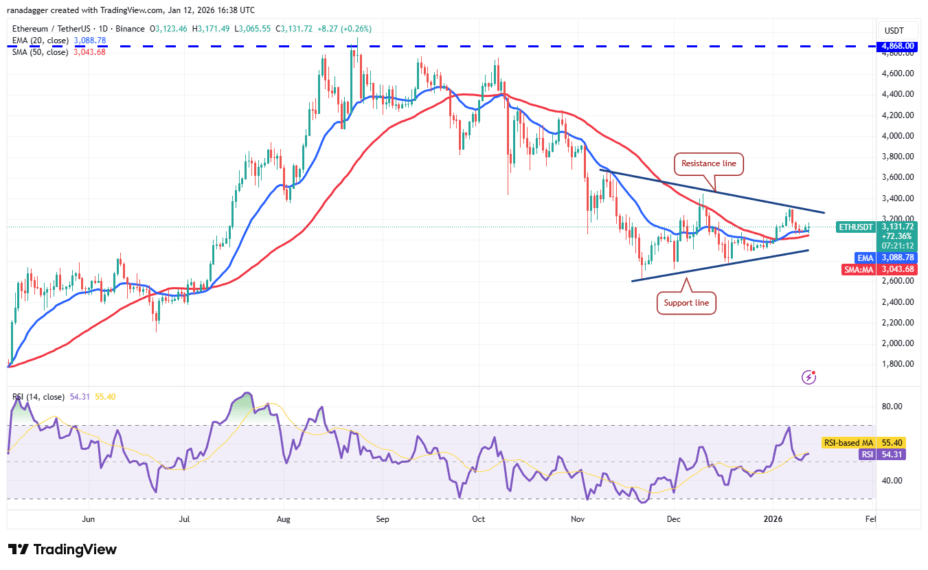 Ether (ETH) se odrazil od 20denní EMA (3,088 $), což naznačuje, že se býci pokoušejí převzít kontrolu.