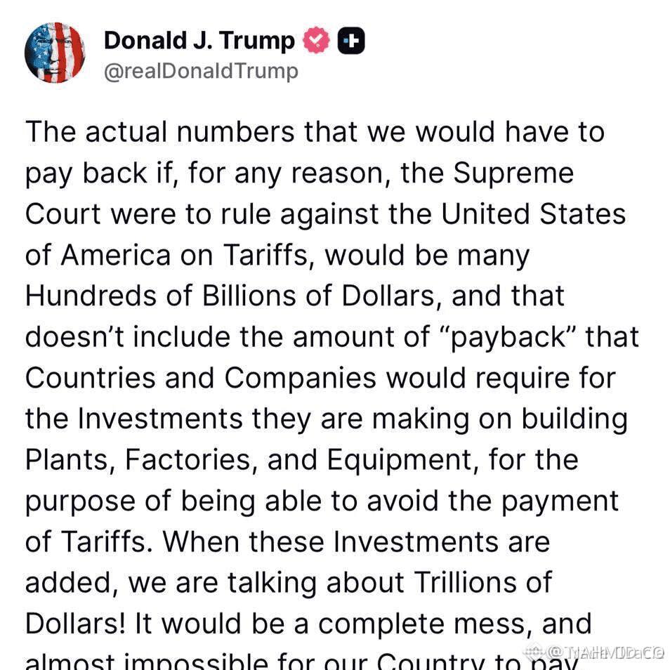 🇺🇸 The stakes for America just skyrocketed. Former President Donald Trump issued a powerful warning that if the U.S. Supreme Court overturns existing tariffs, the consequences could be economically catastrophic for the nation. 💥