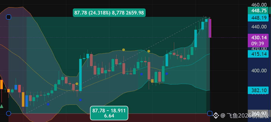 也开始了。这波吃下24.3%涨幅!前面突破到448.7 完成我们目标3.现在设置保本。你觉得下个机会在哪家人们?