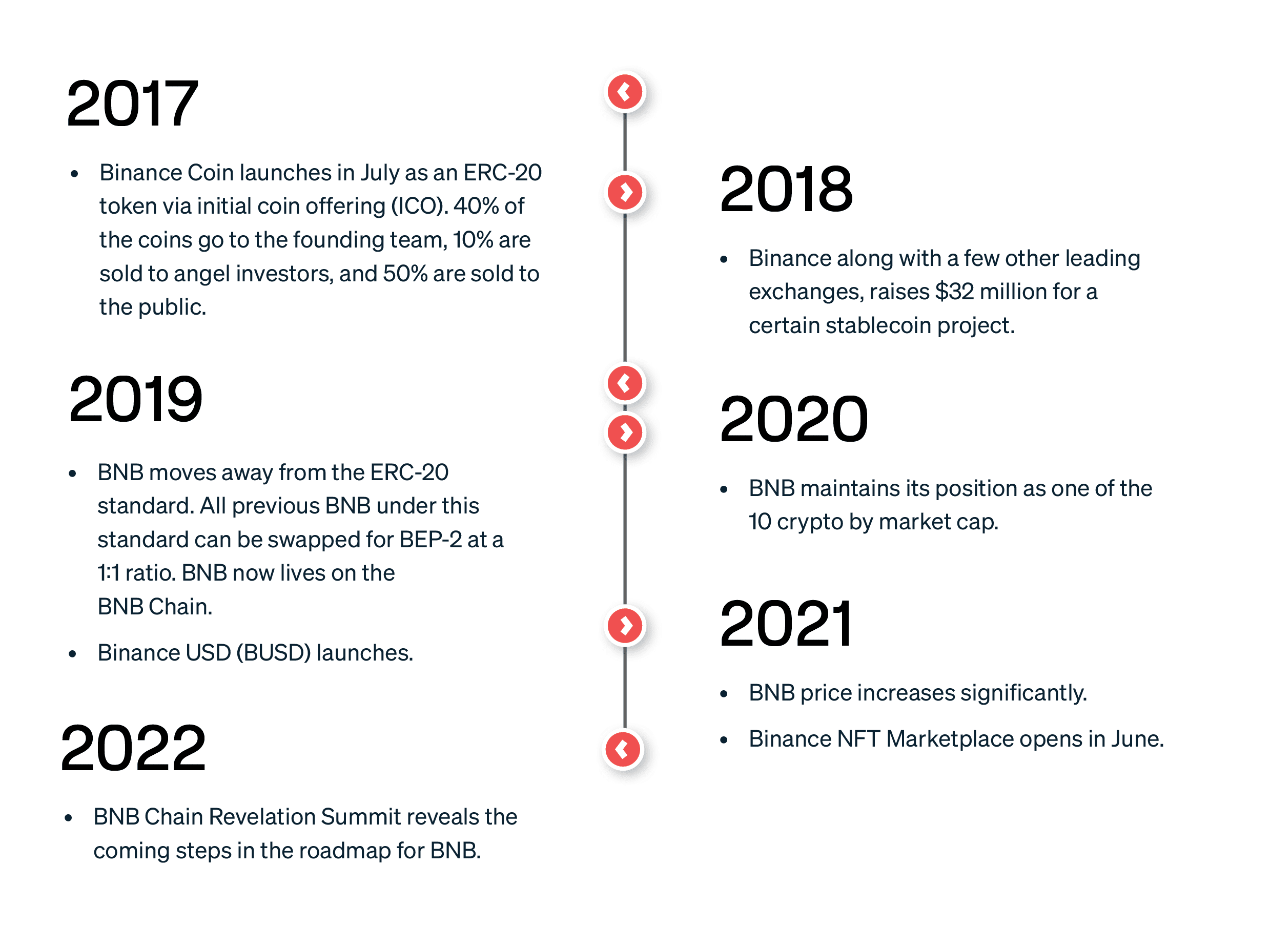 BNB byl vydán Binance v roce 2017 jako užitkový token pro slevy na poplatky za obchodování.
