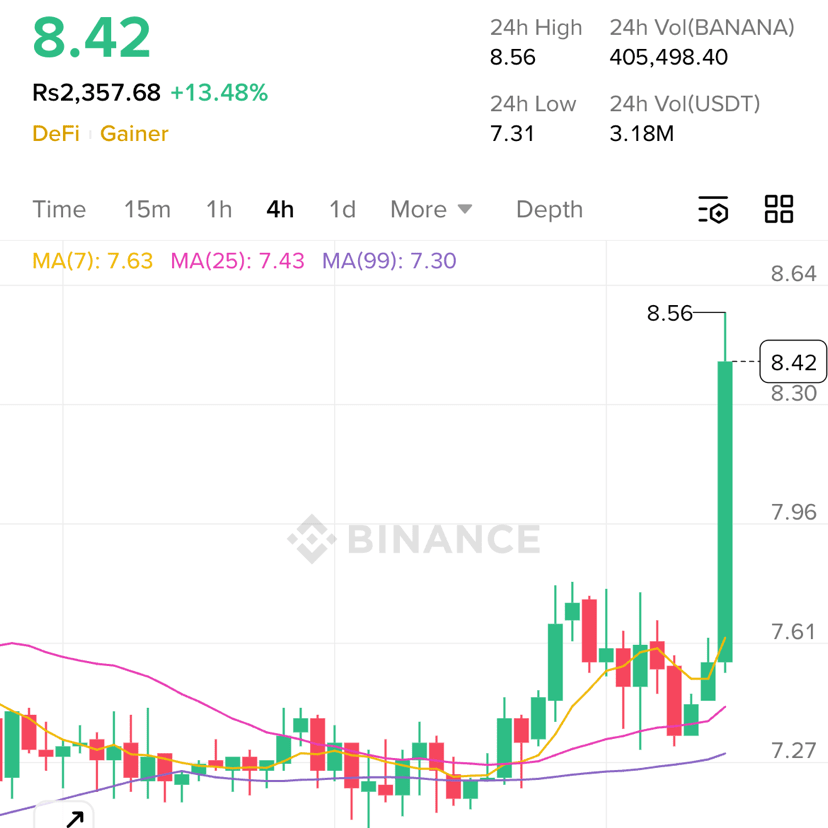 Aktuální momentum: $BANANA se vyvíjí býčím směrem na 4hodinovém časovém rámci, přičemž 50denní klouzavý průměr začíná stoupat.