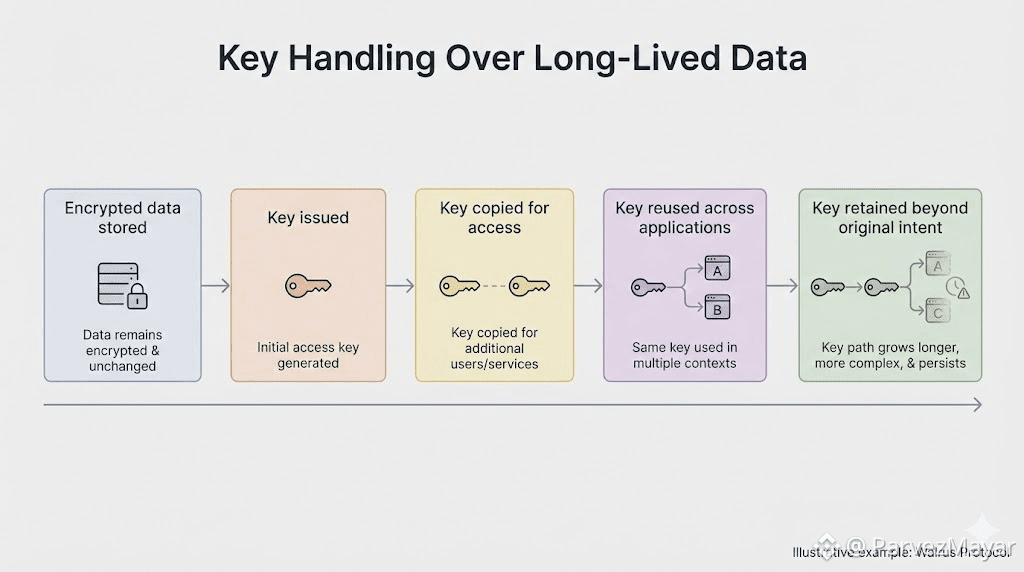 Walrus Protocol makes sense in this drift, because the data does not evaporate. It stays durable long enough for shortcuts to stack, across terms, across "we'll rotate later' promises. Long lived encrypted objects don't forgive sloppy key paths. They actually remember them well.