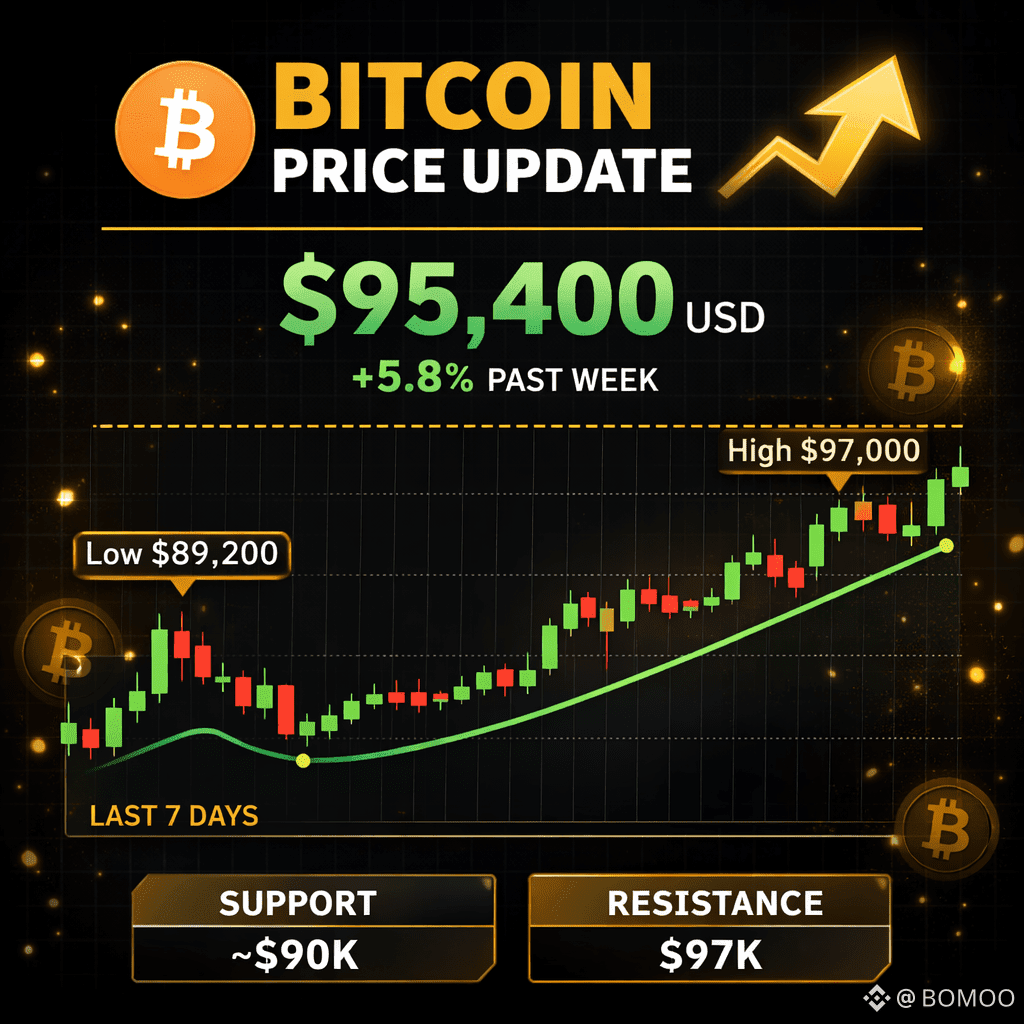 📉 However, Bitcoin has occasionally dipped below this range, and the broader rally has stalled at times, especially as key US crypto legislation strugglesBitcoin (BTC) is currently trading around ~$95,400 USD (price fluctuates with markets) — with recent swings between about $95k–$97k