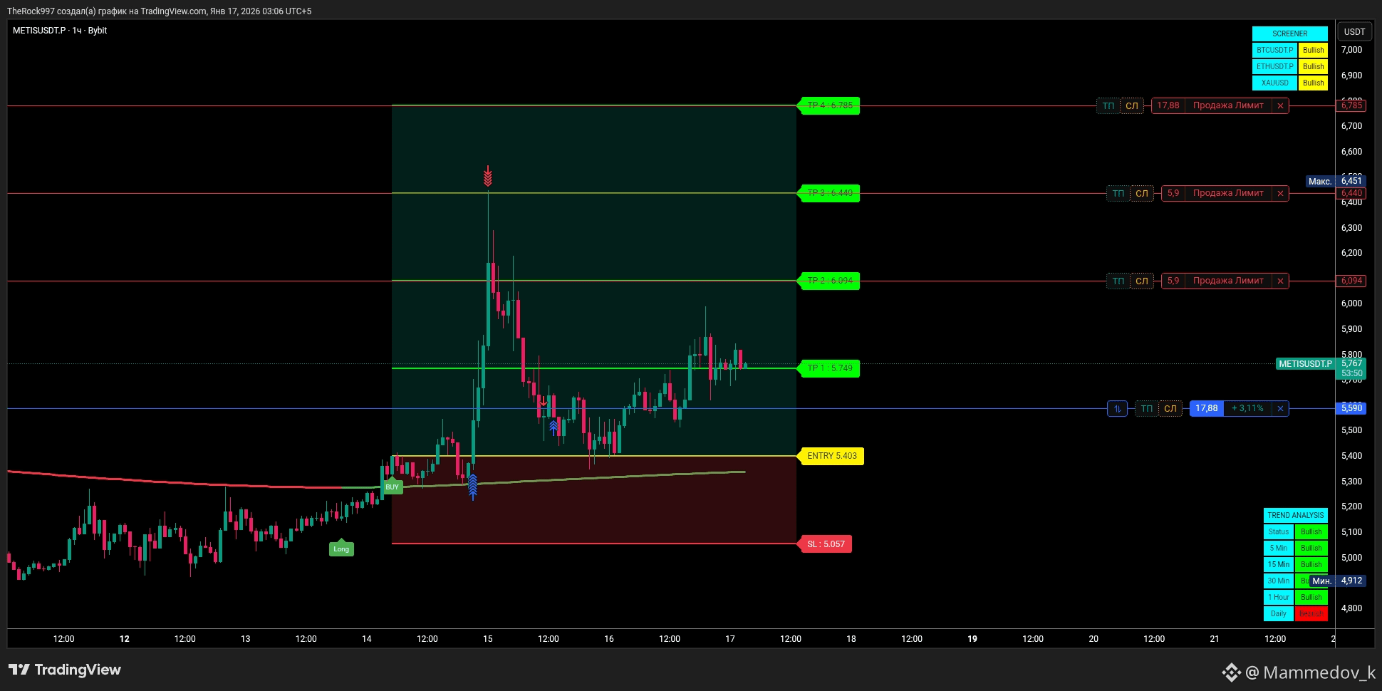 METISUSDT отрабатывает 📈 Стоп в Б.У., рисков больше нет. Дальше по плану 🎯