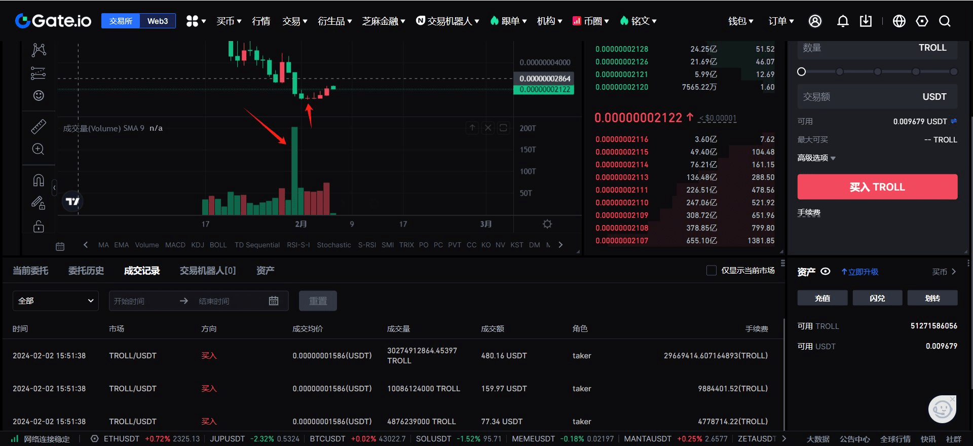 2. února jsem koupil několik $ Troll na bráně a vytvořil si spodní pozici (kontrakt: 0xf8ebf4849F1Fa4FaF0DFF2106A173D3A6CB2eB3A), což byl téměř nejnižší bod za poslední období.
