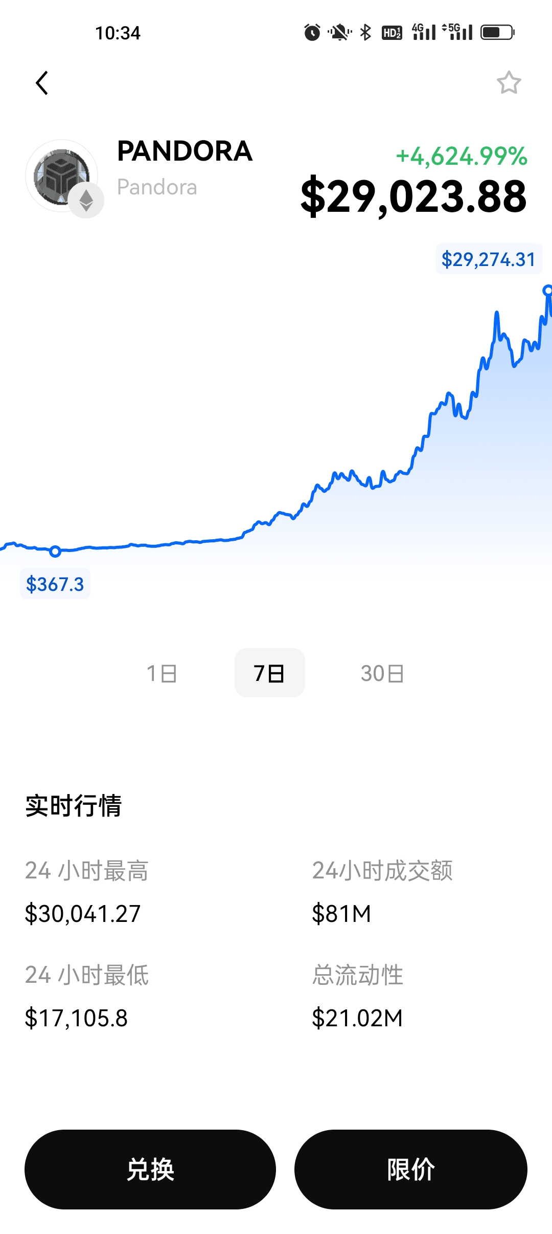 Pandora je prvním tokenem protokolu Erc404 Od jeho spuštění před týdnem se základní cena zvýšila z více než 300 nožů na 28 000 nožů nyní, téměř 80krát za 7 dní.