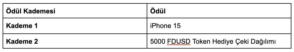 Způsobilí účastníci, kteří mají nárok na odměnu pro iPhone 15, budou kontaktováni prostřednictvím e-mailové adresy propojené s jejich účtem Binance do jednoho týdne po skončení akce, aby shromáždili informace nezbytné k doručení odměn. Odpovědí na e-mail dává uživatel souhlas se sdílením svých osobních údajů, včetně jména, adresy a dalších údajů nezbytných k doručení odměn. Alternativně mohou způsobilí účastníci, kteří vyhrají cenu za iPhone 15, dostat možnost vybrat si dárkovou kartu s tokenem 1 757 FDUSD místo iPhonu 15.