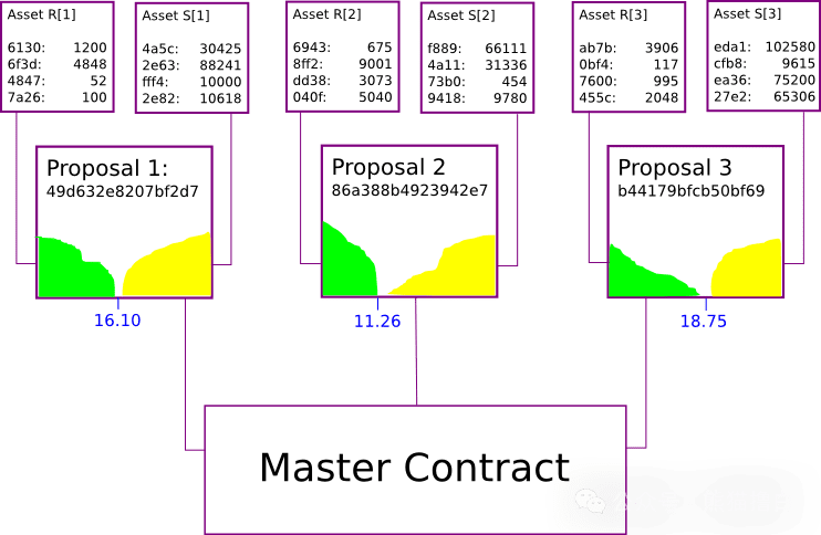 Vygenerujte n párů aktiv R[i] a S[i] na základě počtu návrhů a náhodně nějakým způsobem přidělte T jednotek každého typu tokenu (např. přidělte těžařům podle vzorce, který si sama určí, holding $Futa By). DAO také poskytuje n trhů M, kde trh M[i] umožňuje transakce mezi R[i] a S[i].