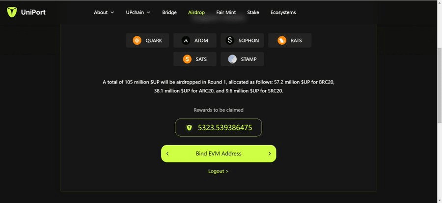 Získejte URL: https://airdrop.uniport.network. Po propojení s peněženkou vyplňte svou evm adresu. Mělo by být přeneseno přímo do peněženky bez plynu.