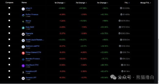 Je vidět, že prostřednictvím protokolů pro opětovné zavázání likvidity, jako je ether.fi, může výrazně zjednodušit účast uživatelů na operacích EignLayer a neexistuje žádný limit vkladů. Zároveň tyto protokoly uvolní také tokeny Liquid Re-Pledge (. LRT, Liquid ReStaking Token), umožňující uživatelům účastnit se dalších projektů Defi v ekosystému.