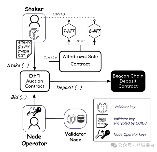 Stručně řečeno, Ether.fi zaručuje uživatelům vlastnictví jejich aktiv tím, že dává stakeholderům plnou kontrolu nad jejich validačními klíči a používá specifické NFT k reprezentaci nároků na vsazená aktiva a sdílí klíče prostřednictvím zabezpečeného mechanismu, což zajišťuje bezpečnost a transparentnost procesu sázek. .