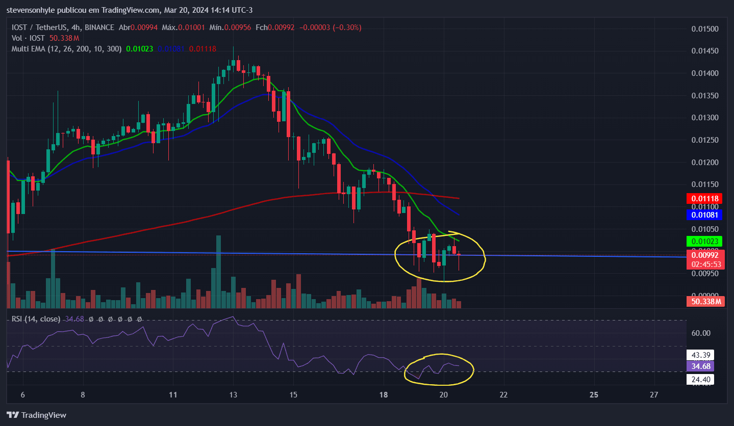 Nakonec IOST odhaluje základnu podpory na týdenním grafu s průměrem za 26 období, zatímco RSI naznačuje přeprodáno na 4hodinovém grafu.