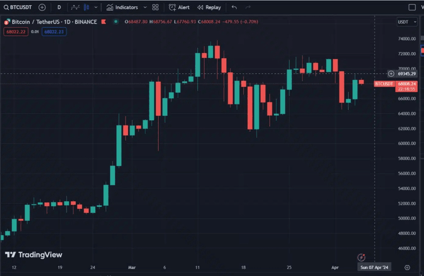 S další akcí na polovinu naplánovanou na 20. dubna cena bitcoinu v březnu vyskočila na nové historické maximum 73 737 dolarů, přičemž během měsíce několikrát raketově vyletěla, protože pokračovala v růstu. Předchozí historické maximum bitcoinu bylo stanoveno v listopadu 2021 na přibližně 69 000 $.