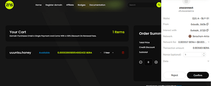 ➢ Příprava: Připravte si peněženku, X a Discord. ➢ Podle pokynů propojte svou peněženku, připojte se k Discordu a připojte svůj účet X. ➢ Úkoly webové stránky: Po vstupu na webovou stránku klikněte na ikonu připojení k peněžence vpravo nahoře a dokončete úkol. ➢ Přidání názvu domény Úkol: Nakupte pomocí rezervovaných testovacích žetonů, jak je uvedeno výše (obrázek 2).