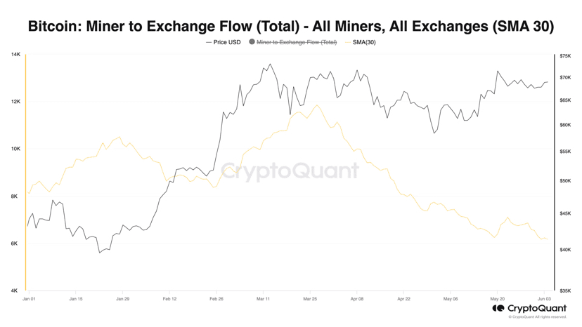 Zásoby těžby bitcoinů klesly na nejnižší úroveň od začátku roku, což naznačuje rostoucí trend výprodejů mincí ze strany těžařů. Bitcoin vyskočil na 70 700 USD, což je nejvyšší cena za téměř dva týdny.