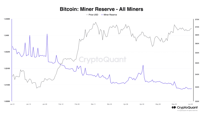 Údaje z CryptoQuant odhalují, že těžební rezervy bitcoinu [BTC] klesly na nejnižší úroveň od začátku roku.
