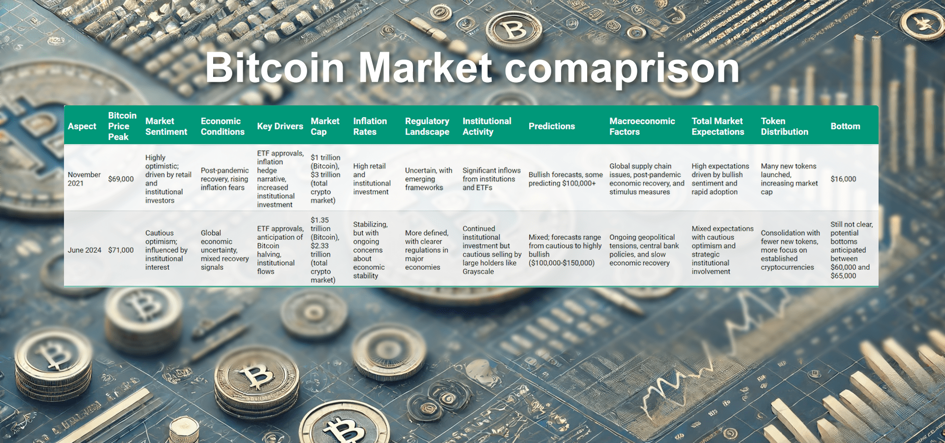 Makroekonomické podmínky v roce 2024 jsou výrazně náročnější než v roce 2021. S vyšší inflací, zesíleným geopolitickým napětím, přísnějšími regulacemi a opatrnějším sentimentem investorů je ekonomická scéna volatilní a nejistá. Tyto faktory činí rok 2024 potenciálně tvrdším pro bitcoiny a další kryptoměny, ale také zralý na strategické příležitosti pro informovaného investora.