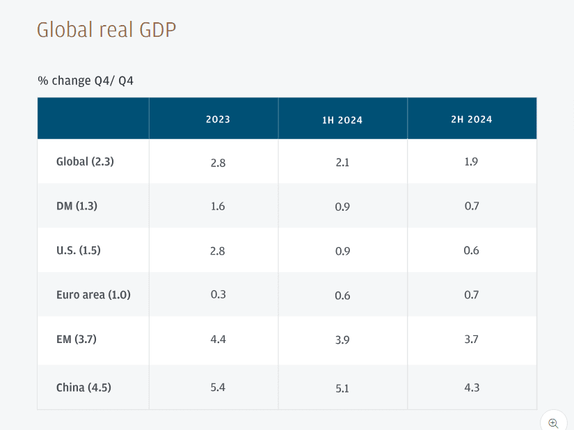 Ekonomické zpomalení: Globální růst HDP se zpomalil na přibližně 2,4 % v důsledku přetrvávající inflace a přísnější měnové politiky (CoinGecko).