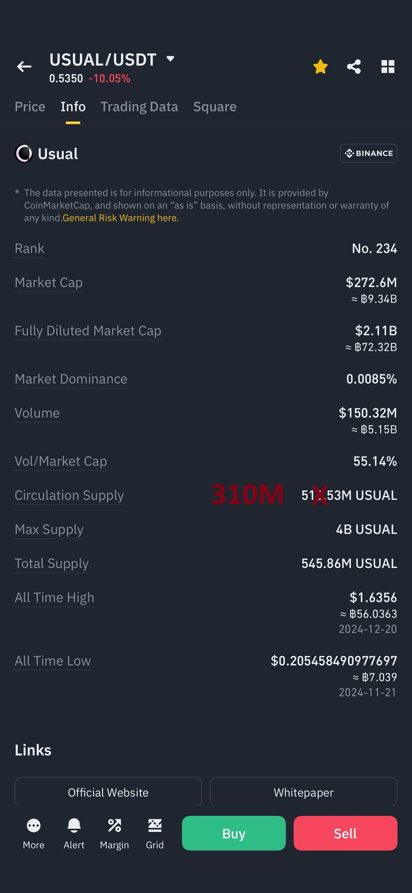 • Gesamtumlaufmenge an USUAL: 516,53 Millionen USUAL.