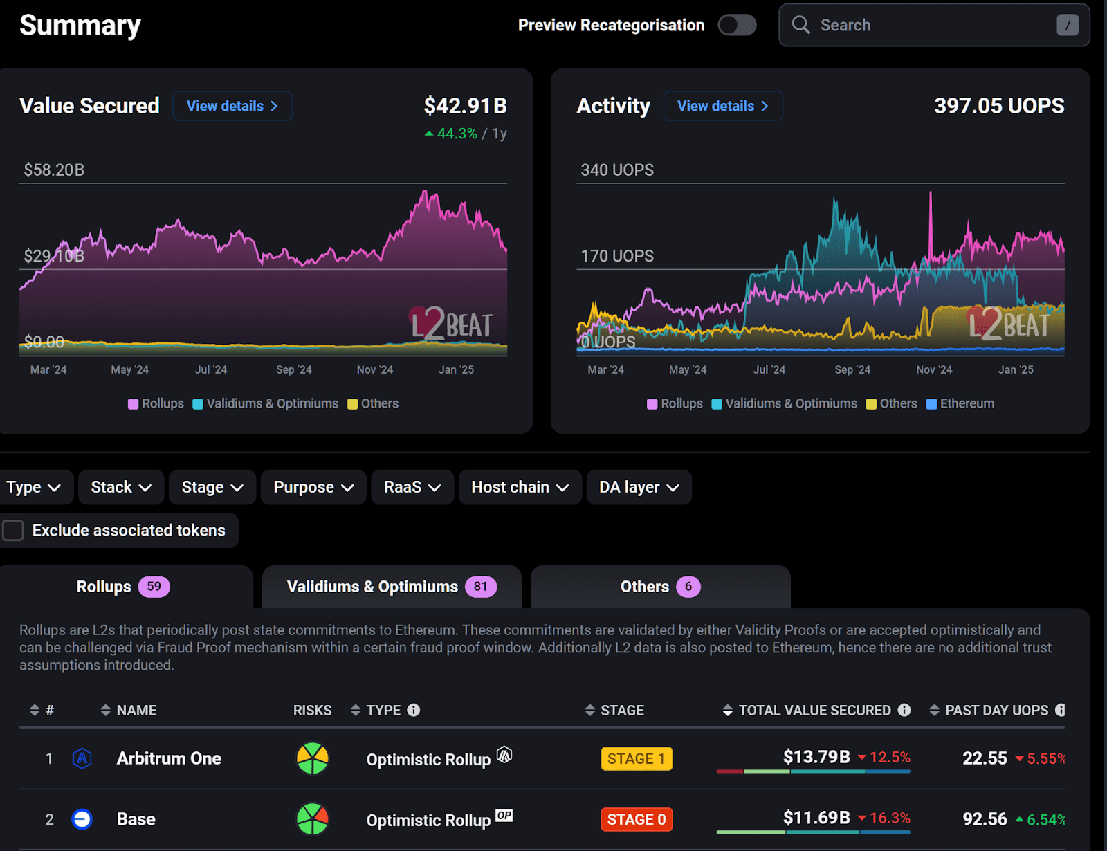 Der Hauptgrund für diesen Rückgang könnte der drastische Rückgang der On-Chain-Aktivitäten hin zu Layer-2-Lösungen wie Arbitrum (ARB), Optimism (OP), Polygon (POL) sein. Darüber hinaus gibt es auch ein starkes Wachstum skalierbarer Layer-1-Blockchains wie Solana (SOL), BNB Chain (BNB), Tron (TRX), Avalanche (AVAX) und Cardano (ADA).