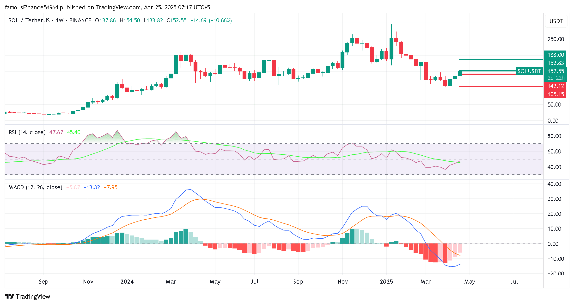 Solana (SOL) hat einen massiven Anstieg gegenüber Tether (USDT) erlebt, sprang an einem einzigen Tag um über 10 % und erreichte 152,87 $. Diese signifikante Bewegung hat Händler begierig gemacht, vorherzusagen, wohin sich der Preis von SOL in der kommenden Woche bewegen könnte. Lassen Sie uns die entscheidenden Preislevels analysieren, die zu beobachten sind, und potenzielle Szenarien.
