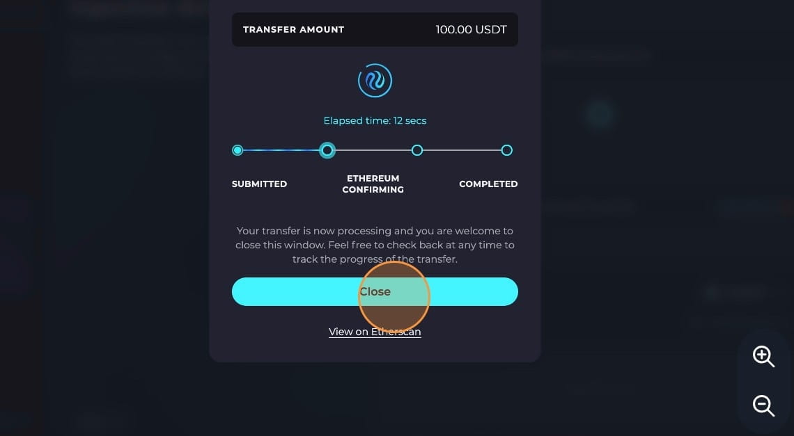 Um Token von Ethereum zu übertragen, ist ein Nominalbetrag in ETH-Gasgebühren erforderlich (keine Sorge, bei Injective gibt es keine Gasgebühren!). Fahren Sie fort, indem Sie „Genehmigen“ auswählen. Nachdem Sie das Guthaben festgelegt haben, können Sie mit der Übertragung Ihrer Vermögenswerte auf Injective fortfahren.