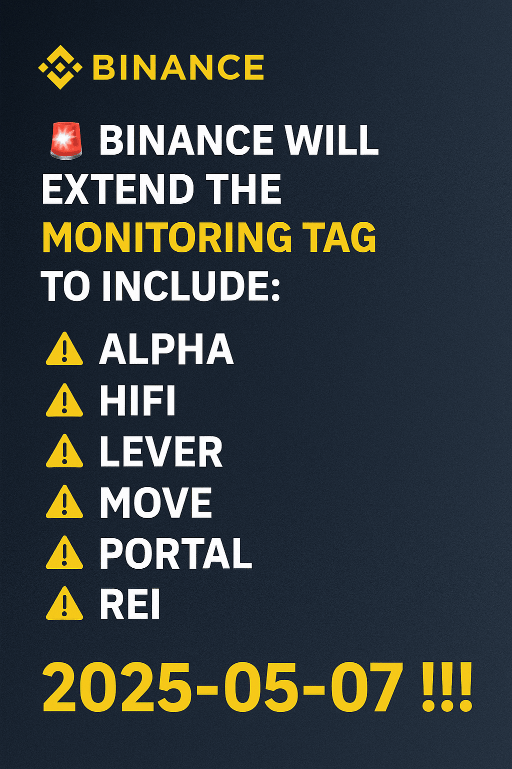Haltet euch fest, Krypto-Familie! Binance zieht mit seinem neuesten Update die Zügel an! Ab dem 7. Mai 2025 werden die folgenden Token mit dem Monitoring-Tag versehen: