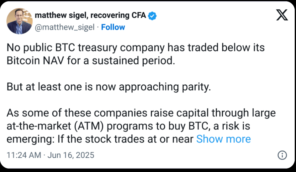 Laut dem Krypto-Analysten von VanEck müssen Unternehmen, die Bitcoin kaufen, ihre Positionen nun neu bewerten, insbesondere wenn ihre BTC-Bestände beginnen, sich ihrer eigenen Marktkapitalisierung zu nähern oder diese zu überschreiten.