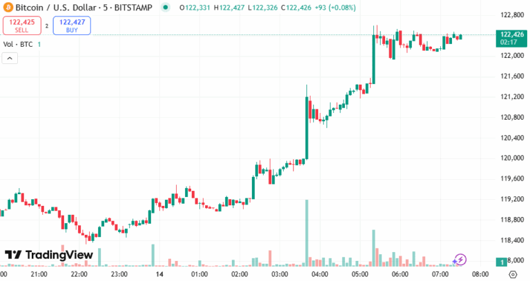 In einer überraschenden Entwicklung erreichte der BTC-Preis gestern 119.292 $, was einen Allzeithoch markiert. Bitcoin hat sein bullish Rally fortgesetzt und erreicht nun ein weiteres neues Allzeithoch von 122,2K. Wie wir berichteten, warum Bitcoin steigt, wird es von einer Kombination von Faktoren angetrieben, einschließlich Trumps Zöllen, robuster ETF-Leistung und erheblicher Akkumulation durch Bitcoin Treasury-Unternehmen.