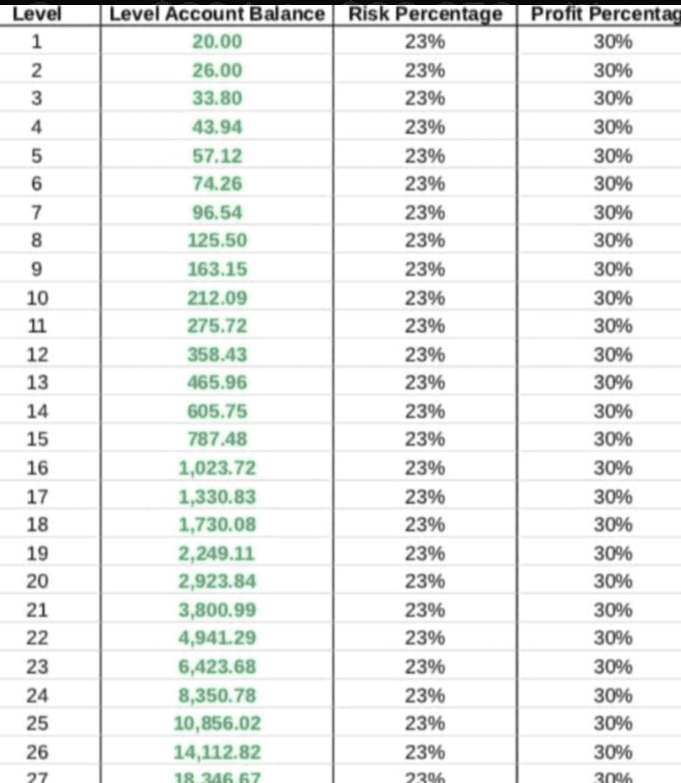 ...setzen Sie diesen Prozess bis Stufe 28 fort, und Ihr Konto könnte $23.850,67 erreichen.