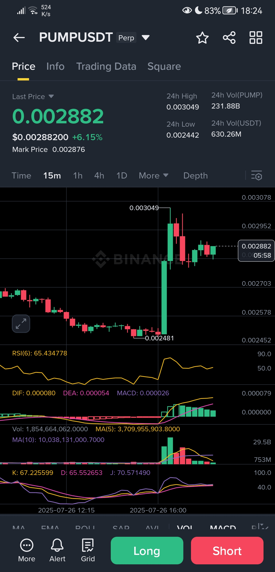 ✅ Plötzlicher Preisexplosion! Nach einem Rückgang des Preises auf $0,002481 erlebte PUMP einen starken Rückprall und erreichte innerhalb kurzer Zeit ein Hoch von $0,003049 – was den plötzlichen Eintritt von massiven Kaufvolumen widerspiegelt!
