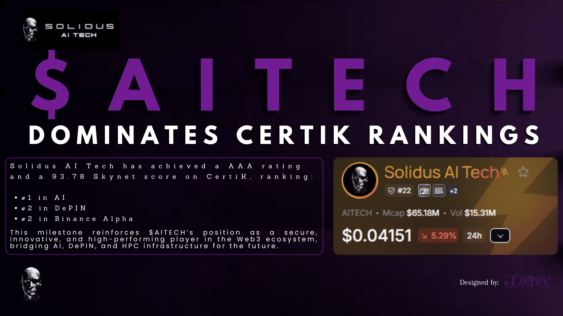 Solidus AI Tech ($AITECH ) hat einen großen Erfolg erzielt, indem es Spitzenpositionen in CertiK’s globalen Ranglisten mit einer AAA-Sicherheitsbewertung und einem Skynet-Score von 93,78 gesichert hat. Dieser Erfolg verstärkt die Rolle von $AITECH als vertrauenswürdige Kraft in KI, DePIN und Blockchain-Infrastruktur.