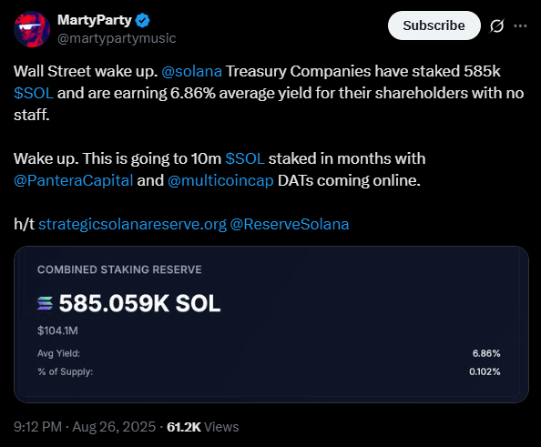 Solana ist ein Favorit von Unternehmen, die Krypto-Reservefonds aufbauen | Quelle: X