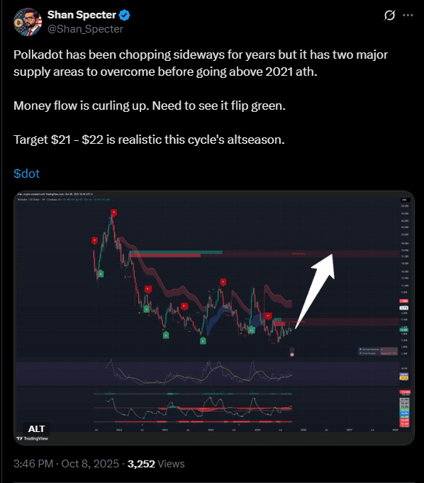 Neue Parachain-Starts im vierten Quartal könnten das Interesse an DOT erneuern, und Analysten sehen Höchststände von etwa $20 für das Vermögen.