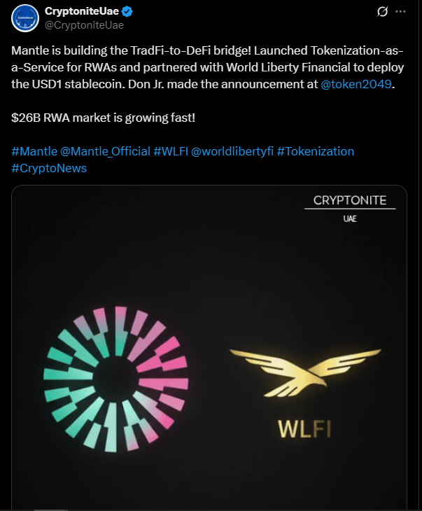 Die Partnerschaft mit World Liberty Financial für einen an den USD gebundenen Stablecoin hat die Liquidität verbessert. Investoren beobachten Mantle, während es Verbindungen zu Bank- und Finanzakteuren aufbaut.