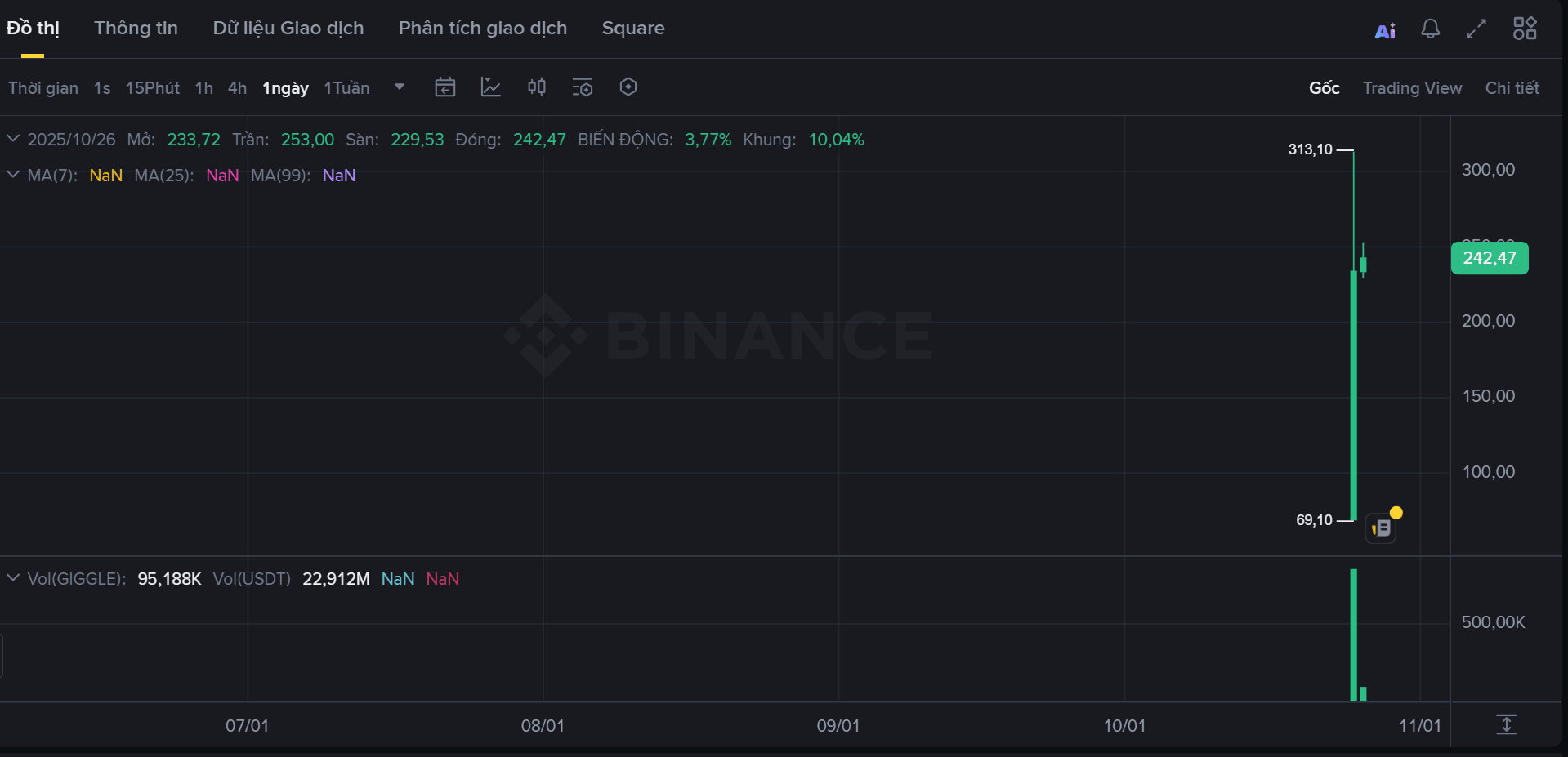In den letzten 24 Stunden, $GIGGLE wurde zum Mittelpunkt der Trader-Community, als der Preis um mehr als 150% stieg und stark von $85 auf fast $274 schwankte.