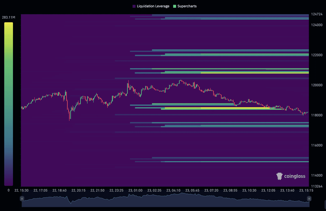 Achte auf LiquiditĂ€tsĂŒbergriffe in der NĂ€he wichtiger Liquidationscluster, bevor du Trades eingehst.