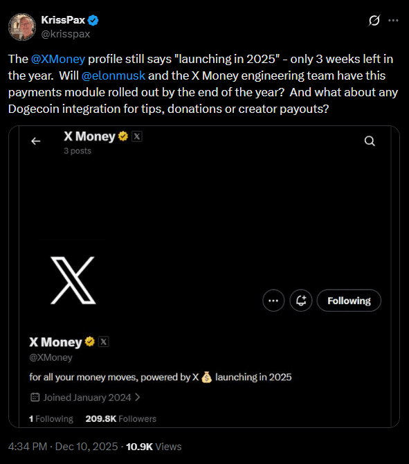 Es gibt bisher noch keine Bestätigung über Dogecoin in X Payments | Quelle: X