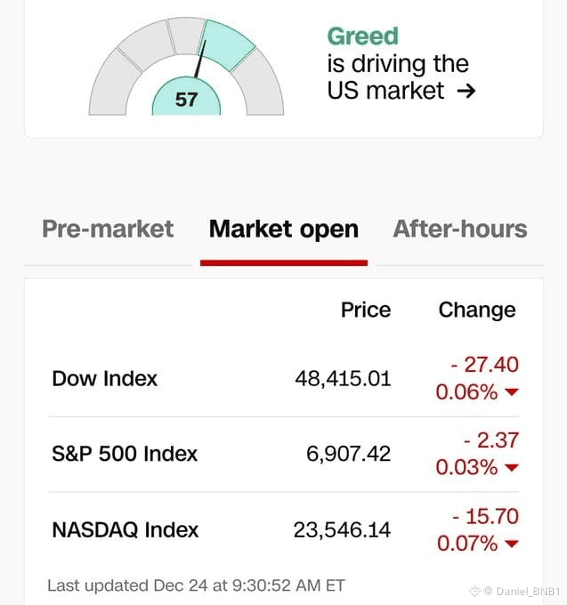 The holiday mood is clearly reflected in the markets today, as investor sentiment shifts toward optimism. The Fear & Greed Index currently stands at 57, signaling that greed is back in control after a period of caution. This suggests that market participants are feeling confident, ready to take on risk, and are increasingly bullish in their positioning.
