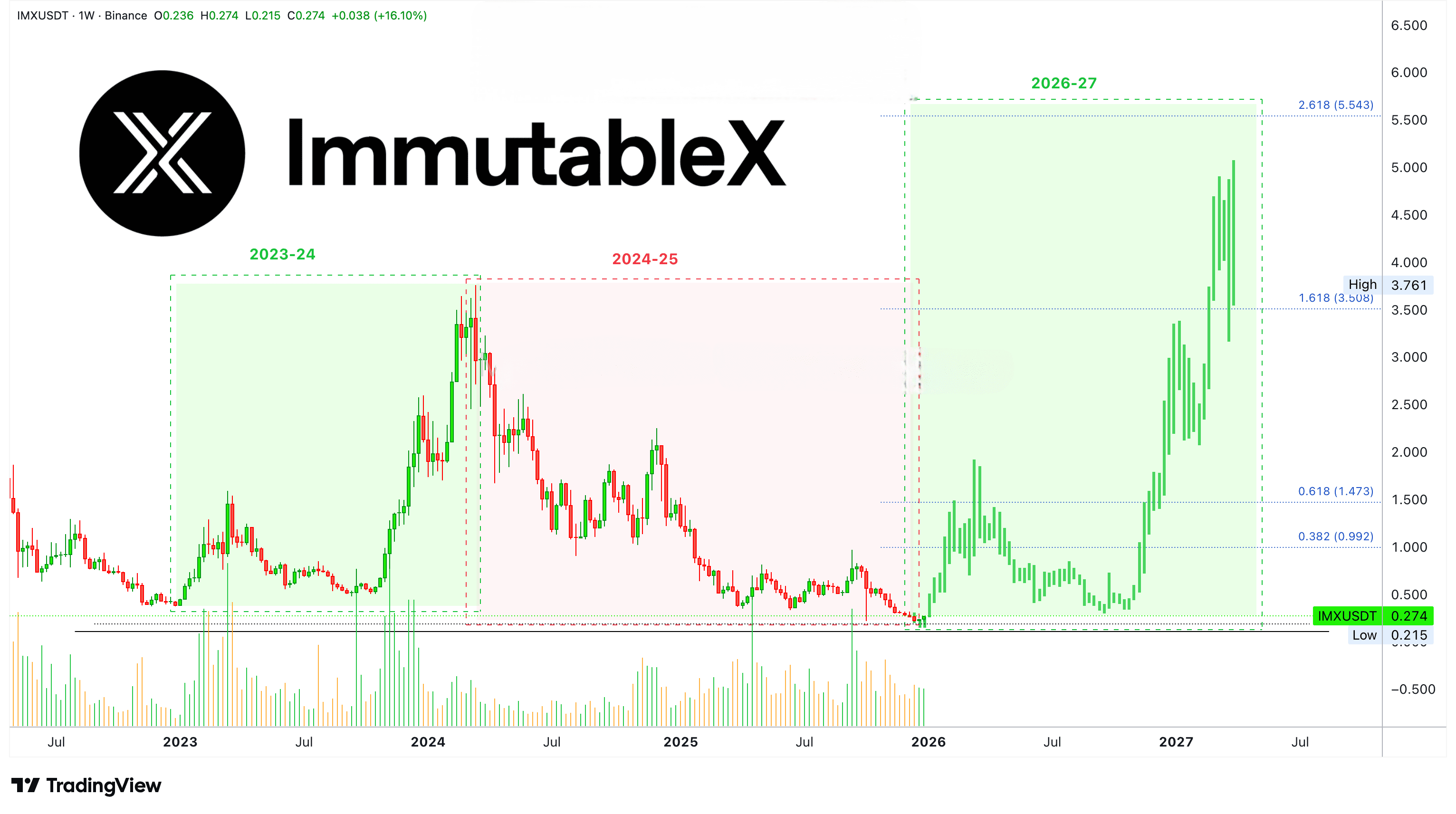 Sieh dir dieses Diagramm hier an, du siehst, wie IMX in 2023-24 abgeschnitten hat. Es war 2025 schwach. Vergleiche IMX mit Bitcoin oder Binance Coin oder Zcash im Jahr 2025 und sieh dir den großen Unterschied an. Da es 2025 schwach war und zu einem vollständigen Abwärtstrend führte, können wir erwarten, dass dieses Projekt in den kommenden Jahren gut abschneidet.