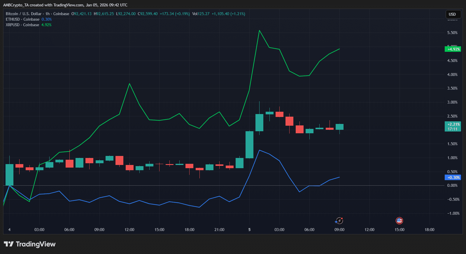 Bitcoin hat die jüngsten Unterstützungsniveaus gehalten und nach oben gedrängt, weshalb Käufer bereit sind, einzusteigen. Ethereum hat ebenfalls stabile Gewinne verbucht. Ripple [XRP] hat sich jedoch als herausragend erwiesen und ist kurzfristig stärker gestiegen als sowohl BTC als auch ETH.
