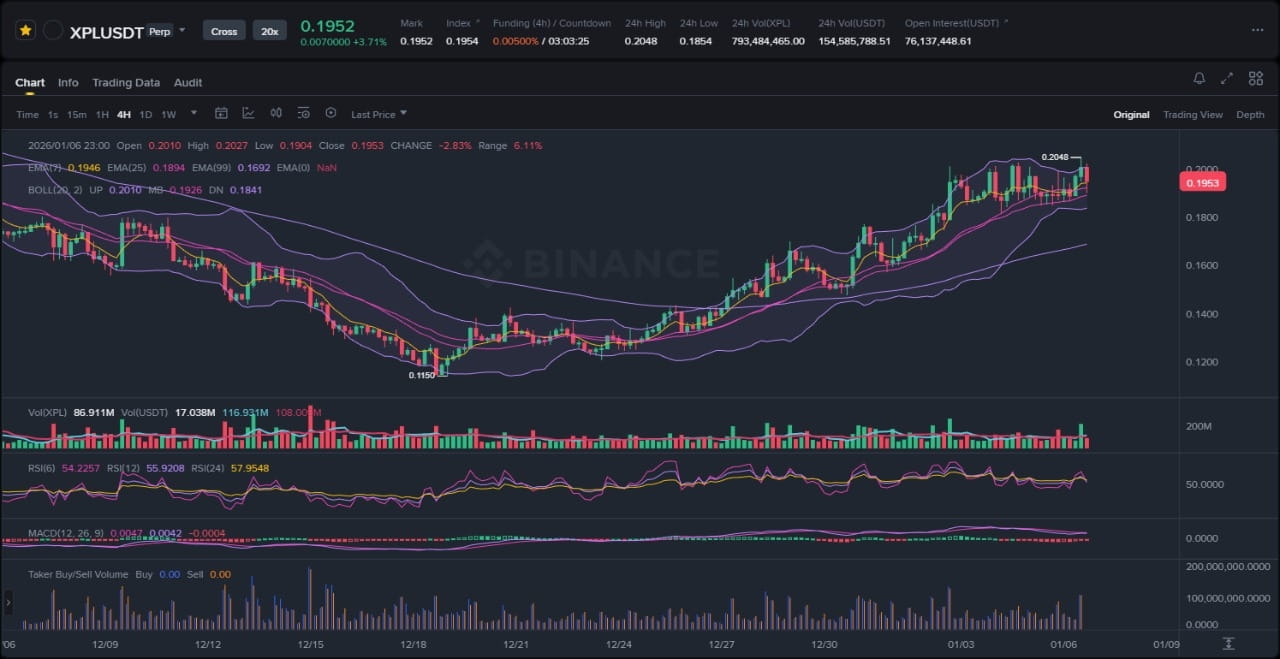 Für die Fortsetzung des Aufwärtstrends muss der XPL-Preis Stärke zeigen, indem er über der $0.170-Konfluenzzone bleibt, idealerweise höhere Tiefs über dem 7-EMA bildet, während das Volumen bei grünen Kerzen ansteigt. Ein Retest des jüngsten Hochs bei $0.172, gefolgt von einem klaren Ausbruch über das obere Bollinger-Band, würde den impulsiven Moment bestätigen, mit Zielrichtungen in Richtung der vorherigen Reichweitenhöhen um $0.185–$0.200, wo historischer Widerstand von Oktober als Gewinnmitnahmezonen dienen könnte. Der MACD sollte eine positive Histogrammerweiterung aufrechterhalten, und ein RSI, der auf 70 klettert, ohne Divergenz, würde diese bullische Fortsetzung unterstützen, möglicherweise verstärkt durch eine Stabilisierung nach der Freigabe, wenn die Transfers robust bleiben.