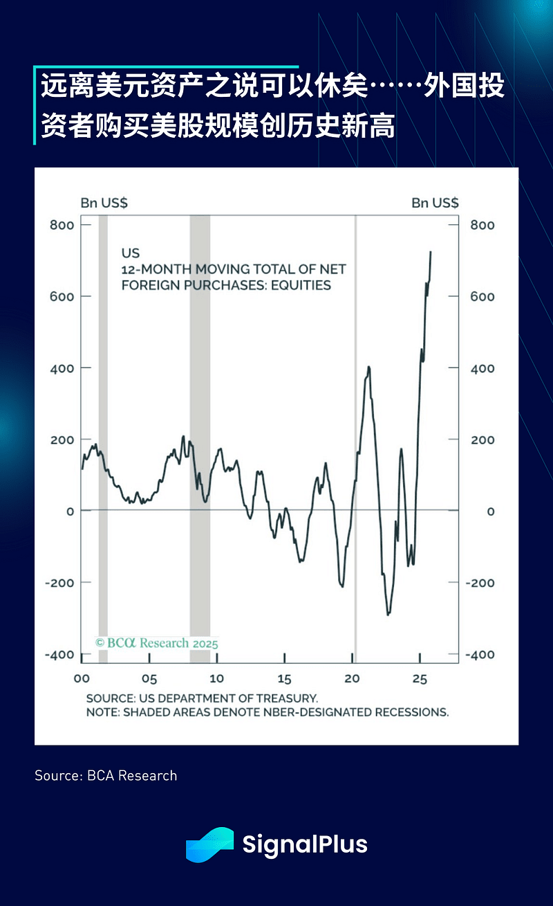 Die Behauptung, man solle sich von Dollar-Assets fernhalten, ist endgültig hinfällig …… Die Auslandsinvestoren haben die Aktienmärkte der USA in historisch höchstem Umfang gekauft