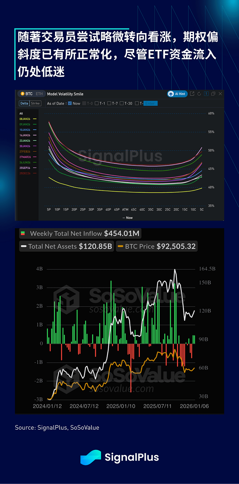 In letzter Zeit hat sich die Neigung der Call-Optionen etwas verbessert, insbesondere bei einem Niveau von 100.000 US-Dollar, da Händler die Sicht auf BTC leicht positiver geworden sind, dennoch bleibt die Stimmung insgesamt vorsichtig, da die ETF-Zuflüsse seit November eher schwach waren. Die Marktaktivität bleibt insgesamt gering, und es wird auf einen stärkeren Impuls gewartet, um die seit November andauernde Spanne zwischen 87.000 und 95.000 US-Dollar zu durchbrechen. Viel Glück beim Handeln.