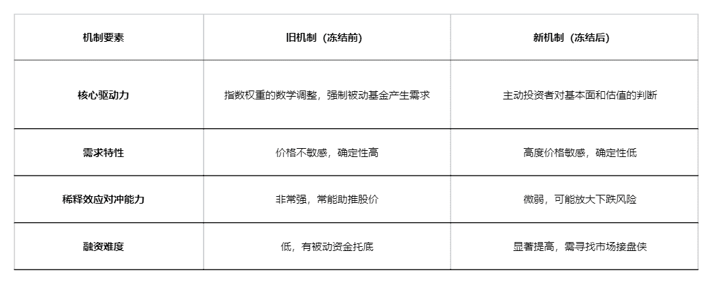 ● Das Indexgewicht des Unternehmens ist fixiert, und das große passive Kapital, das den Index verfolgt, hat daher keine Verpflichtung, diese neu ausgegebenen Aktien zu kaufen.