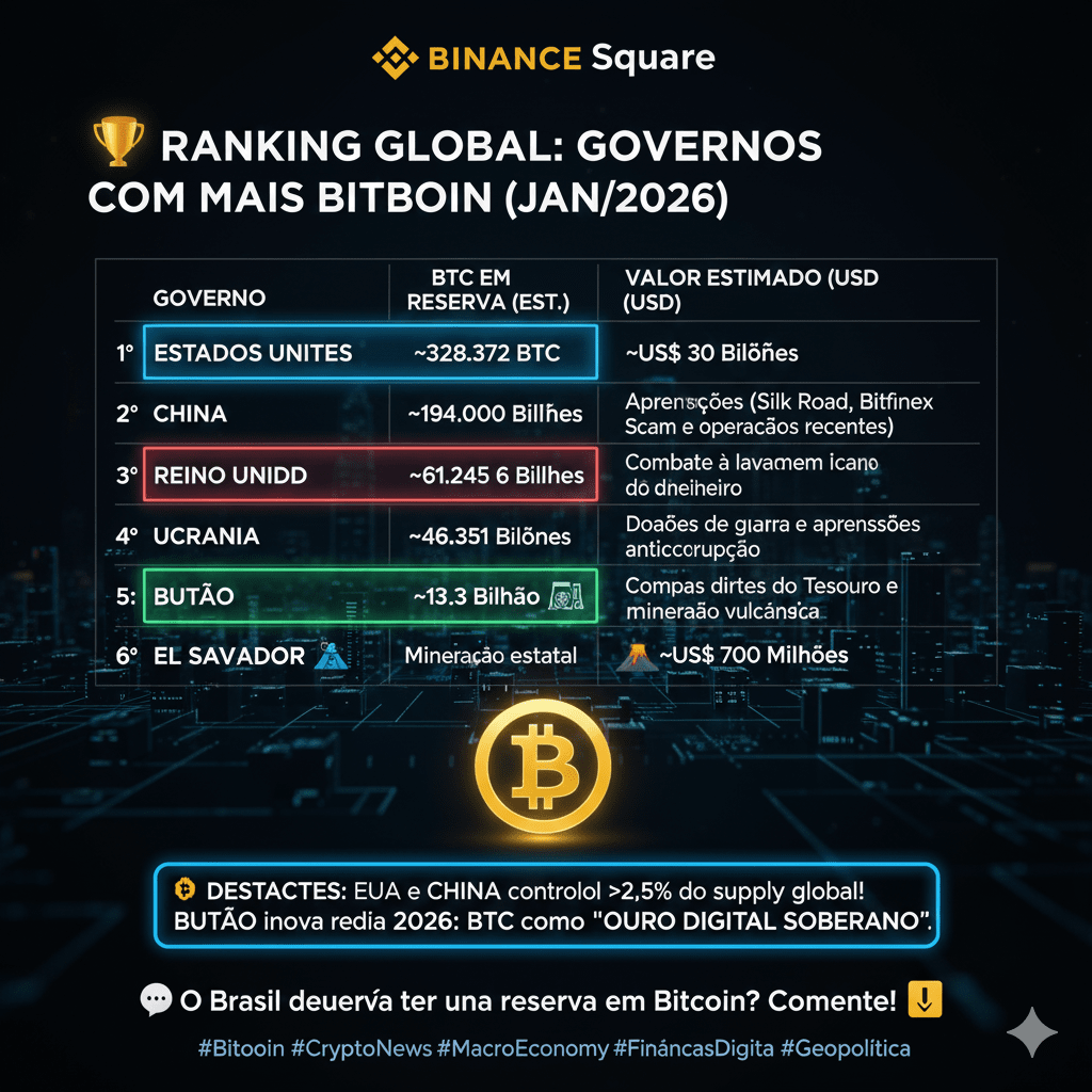 🏆 Globale Rangliste der Regierungen (BTC-Haltungen - Januar 2026)