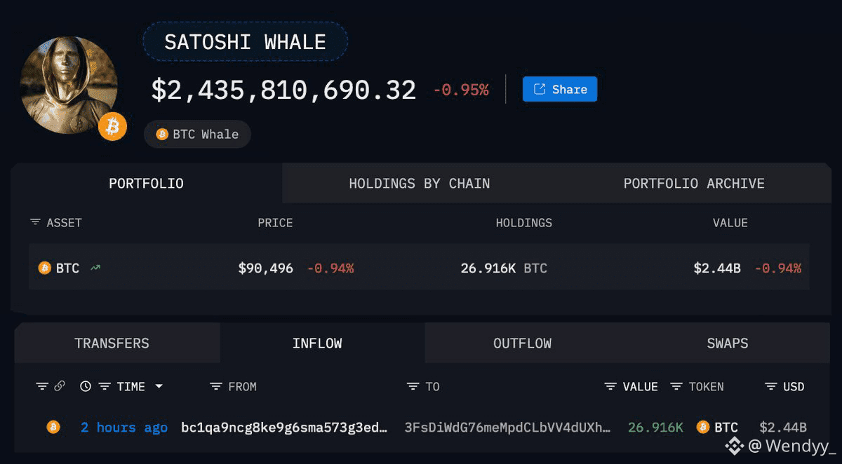 Nach mehr als einem Jahrzehnt des Schweigens erschien plötzlich ein Riese aus der Zeit von Satoshi – und der Zeitpunkt lässt sich nicht übersehen. Diese schlafende Brieftasche hat derzeit etwa 26.900 Bitcoin erworben, was einem gewaltigen Einsatz von 2,45 Milliarden US-Dollar entspricht, basierend auf den aktuellen Kursen. Das letzte Mal, als dieses Wesen erschien? Im Jahr 2011, als Bitcoin für die meisten Menschen noch völlig unbekannt war.