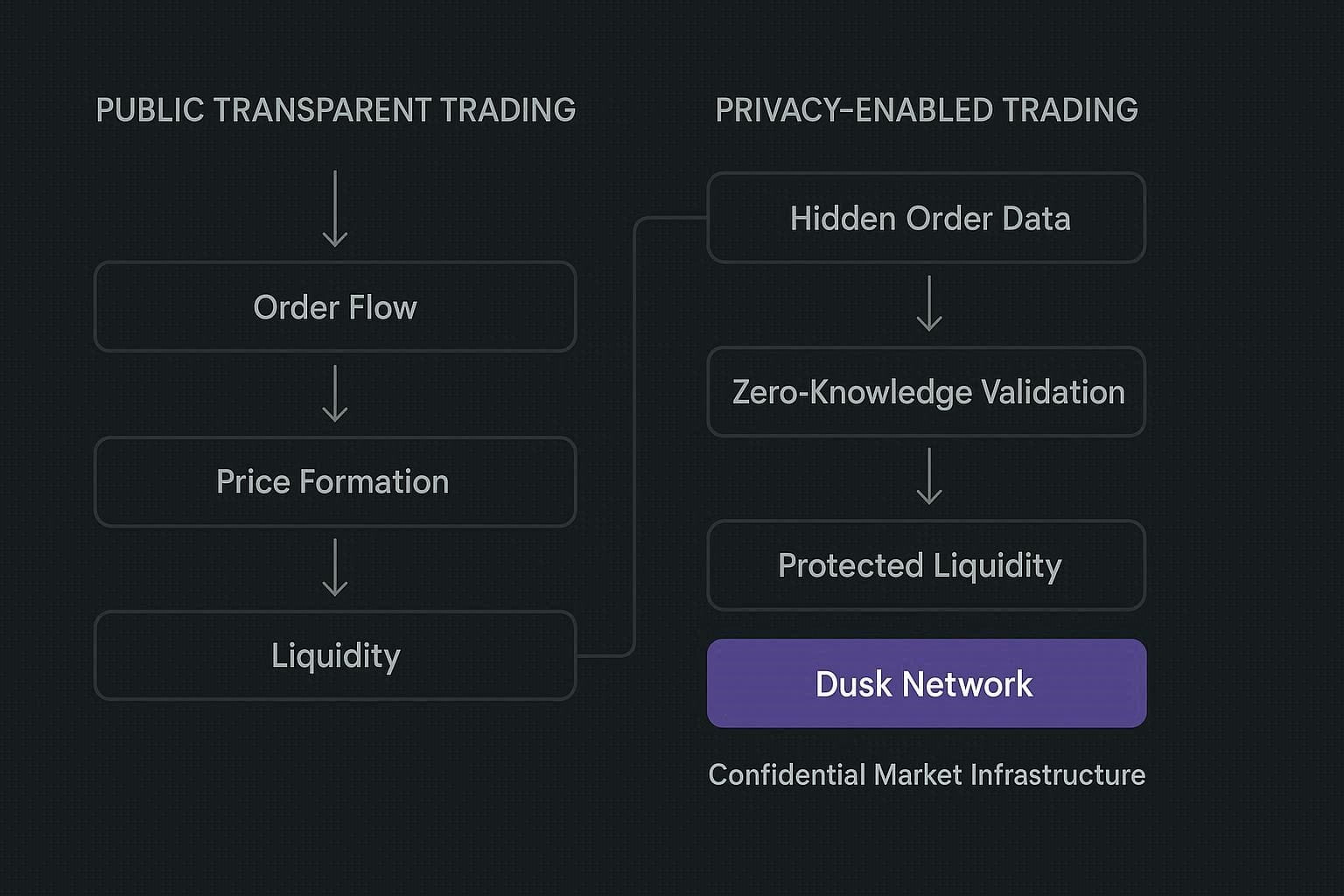 In Dusk kann ein Markt als ein vollständiges System gestaltet werden, nicht als eine öffentliche Vitrine von Transaktionen.